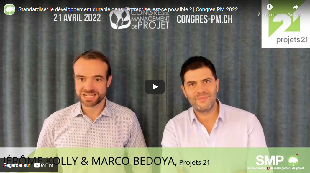 Le développement durable en entreprise est une évidence. Mais par où commencer? Les associés de Projets21 vous en parleront lors d'une formation interactive au Congrès du Management de Projet organisé par la Société suisse de management de projet à HEC Lausanne le 21 avril 2022.